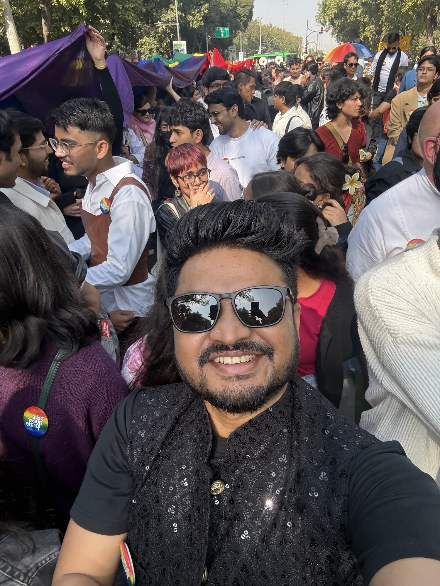 From Barakhamba Road, Connaught Place, ending at Jantar Mantar – streets I’ve walked on for years, sometimes freely, sometimes carefully. Delhi wore rainbows, slogans, and glitter. I saw familiar faces. Older activists. Survivors. People who have marched even when marching felt dangerous.