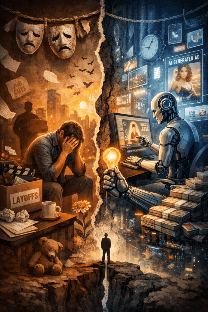 Cost-cutting has now been rebranded as innovation. Production budgets are shrinking, timelines are evaporating, and suddenly everyone is celebrating how a machine can do in seconds what humans took days to craft. The applause is loud. The LinkedIn posts are louder.